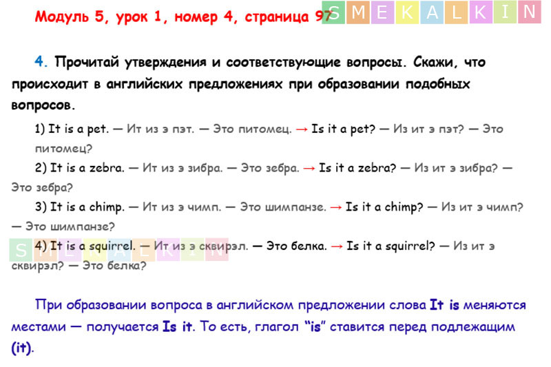 ГДЗ к 4 номеру 1 урока 5 модуля на 97 странице учебника по Английскому языку Афанасьевой, Барановой, Михеевой для 2 класса 1 часть