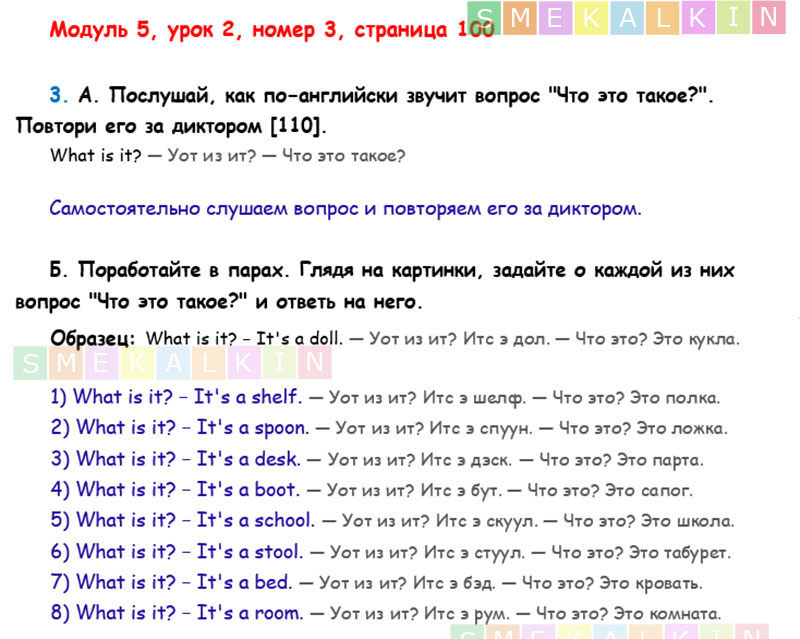 ГДЗ к 3 номеру 2 урока 5 модуля на 100 странице учебника по Английскому языку Афанасьевой, Барановой, Михеевой для 2 класса 1 часть