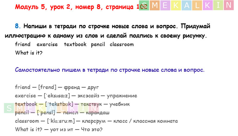 ГДЗ к 8 номеру 2 урока 5 модуля на 102 странице учебника по Английскому языку Афанасьевой, Барановой, Михеевой для 2 класса 1 часть