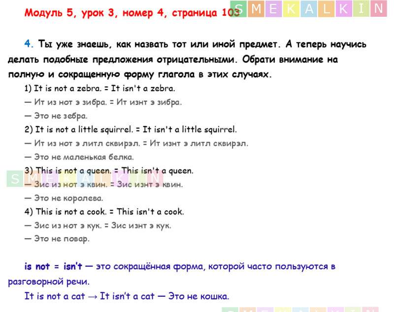 ГДЗ к 4 номеру 3 урока 5 модуля на 103 странице учебника по Английскому языку Афанасьевой, Барановой, Михеевой для 2 класса 1 часть