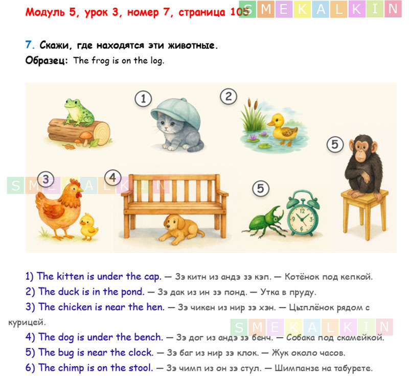 ГДЗ к 7 номеру 3 урока 5 модуля на 105 странице учебника по Английскому языку Афанасьевой, Барановой, Михеевой для 2 класса 1 часть