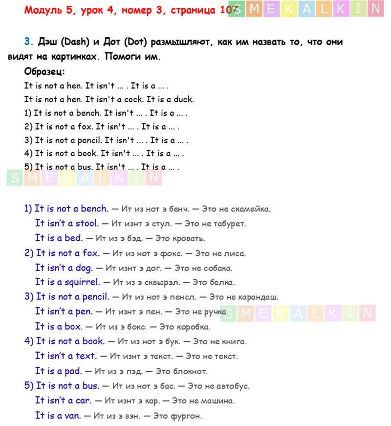 ГДЗ к 3 номеру 4 урока 5 модуля на 107 странице учебника по Английскому языку Афанасьевой, Барановой, Михеевой для 2 класса 1 часть