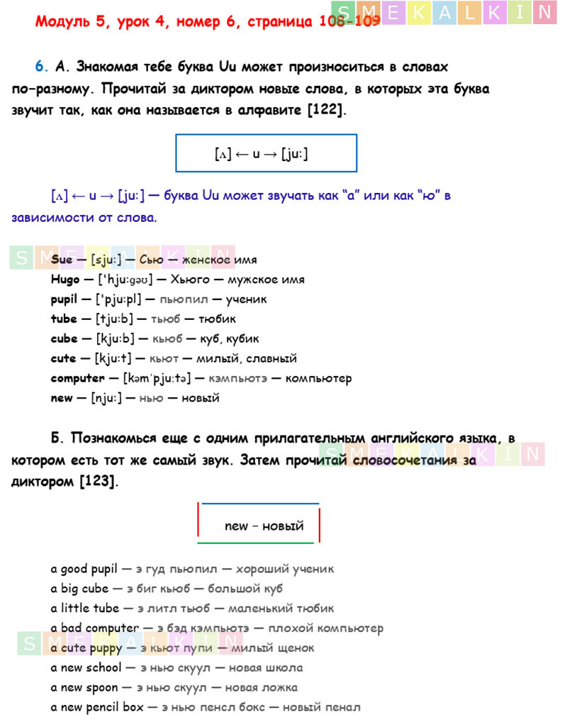 ГДЗ к 6 номеру 4 урока 5 модуля на 108-109 страницах учебника по Английскому языку Афанасьевой, Барановой, Михеевой для 2 класса 1 часть