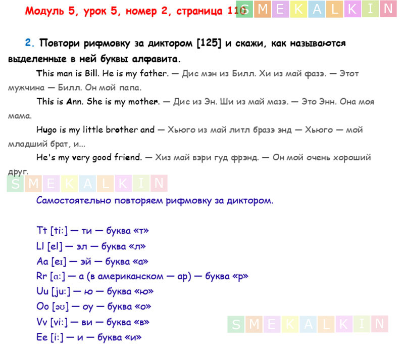 ГДЗ ко 2 номеру 5 урока 5 модуля на 110 странице учебника по Английскому языку Афанасьевой, Барановой, Михеевой для 2 класса 1 часть