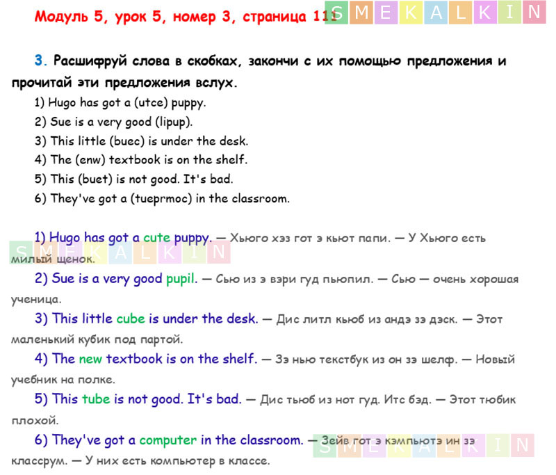 ГДЗ к 3 номеру 5 урока 5 модуля на 111 странице учебника по Английскому языку Афанасьевой, Барановой, Михеевой для 2 класса 1 часть
