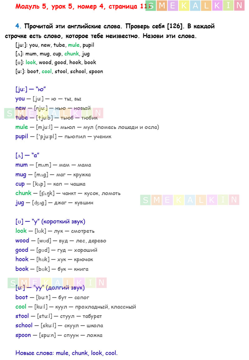 ГДЗ к 4 номеру 5 урока 5 модуля на 111 странице учебника по Английскому языку Афанасьевой, Барановой, Михеевой для 2 класса 1 часть