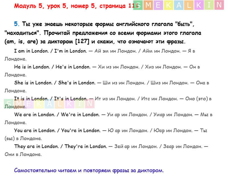 ГДЗ к 5 номеру 5 урока 5 модуля на 111 странице учебника по Английскому языку Афанасьевой, Барановой, Михеевой для 2 класса 1 часть