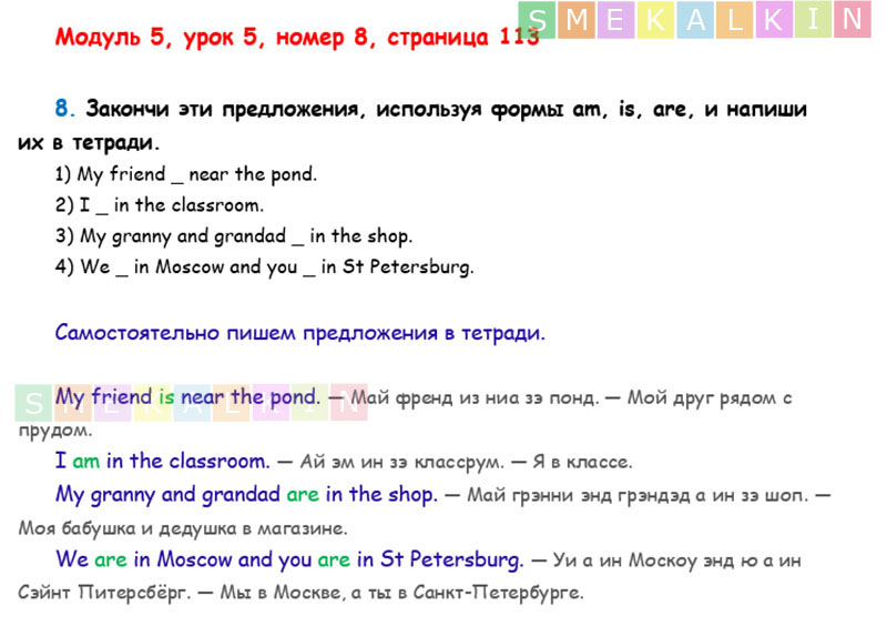 ГДЗ к 8 номеру 5 урока 5 модуля на 113 странице учебника по Английскому языку Афанасьевой, Барановой, Михеевой для 2 класса 1 часть