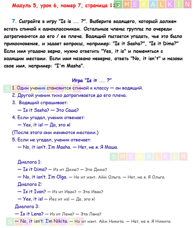 ГДЗ к 7 номеру 6 урока 5 модуля на 117 странице учебника по Английскому языку Афанасьевой, Барановой, Михеевой для 2 класса 1 часть