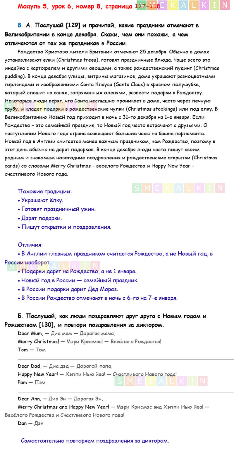 ГДЗ к 8 номеру 6 урока 5 модуля на 117-118 страницах учебника по Английскому языку Афанасьевой, Барановой, Михеевой для 2 класса 1 часть